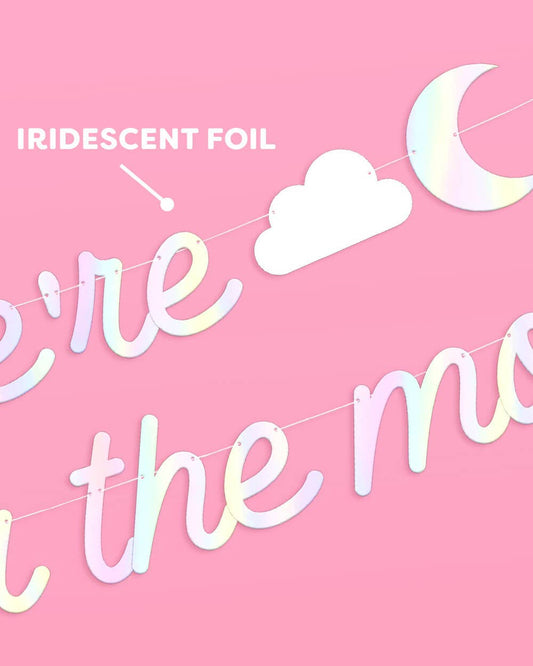 Over the Moon Banner - iridescent foil banner