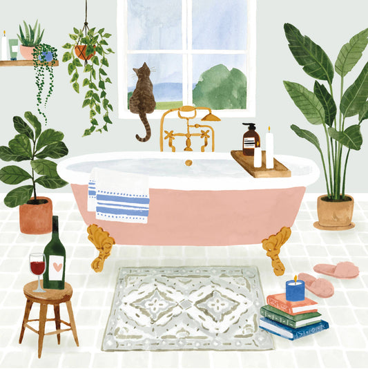 Spa Day Bathtub with Cat Scene Mini Pop-up Card