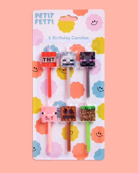 Pixel Minecraft Candles - set of 6, gaming birthday boys
