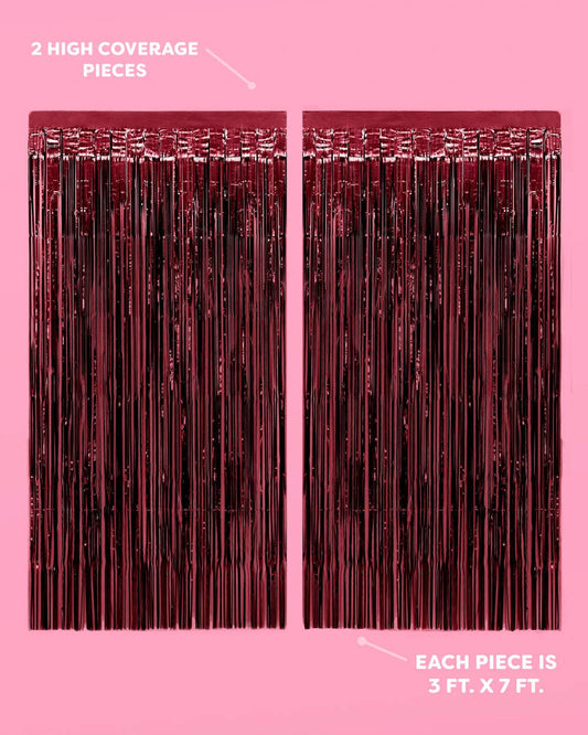 Burgundy Fringe Curtains | 2-Pack Party Backdrop, Tinsel