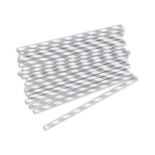 "Sippers" Candy Striped Metallic Print Paper Straws (75): Gold