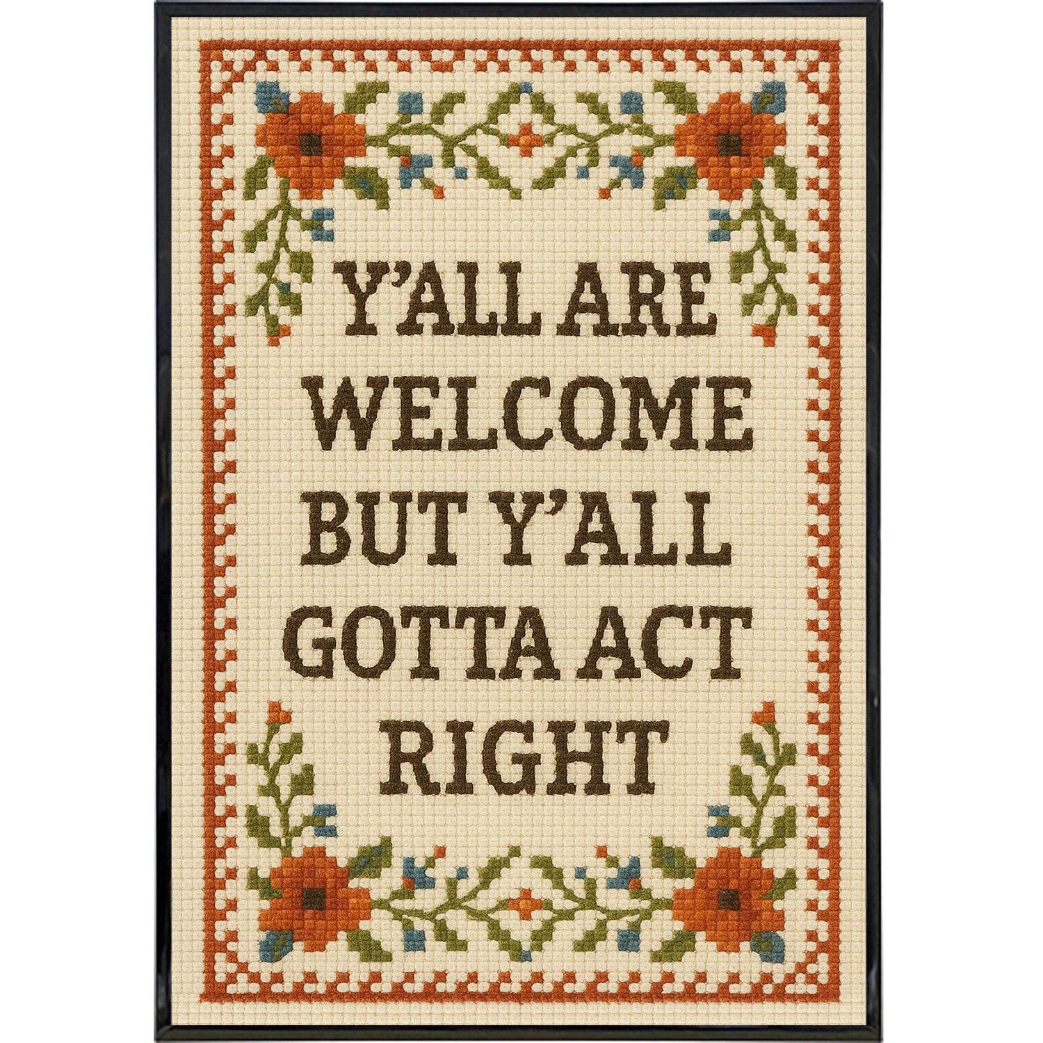 Y'all Are Welcome but Y'all Gotta Act Right Poster Print: Framed Print