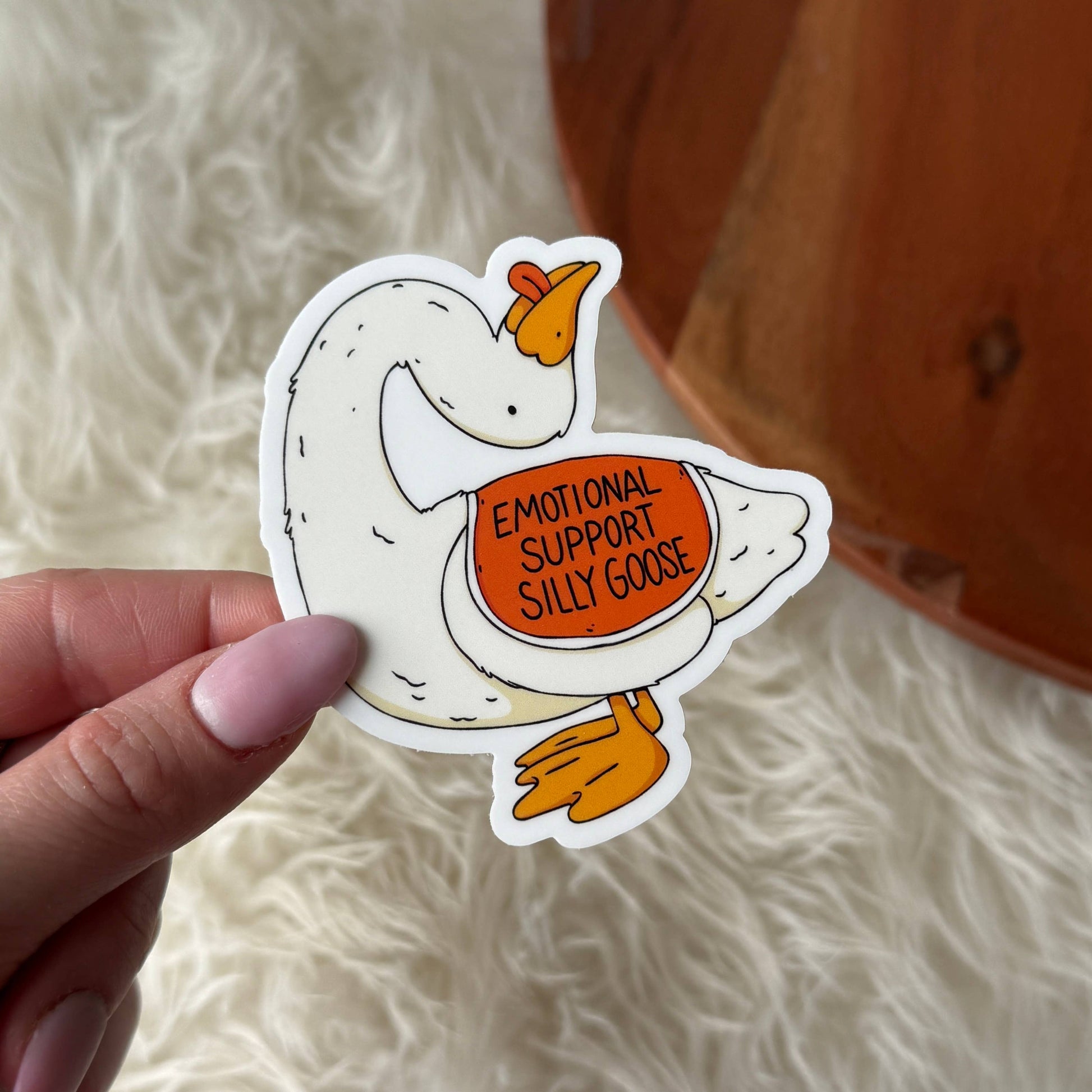 This silly goose sticker is here to provide you with all the emotional support you need - after all he is a emotional support silly goose. High quality vinyl sticker. Great to decorate laptops, water bottles, car windows, coolers, suitcases, bikes, kayaks, phone cases, journals, and more.