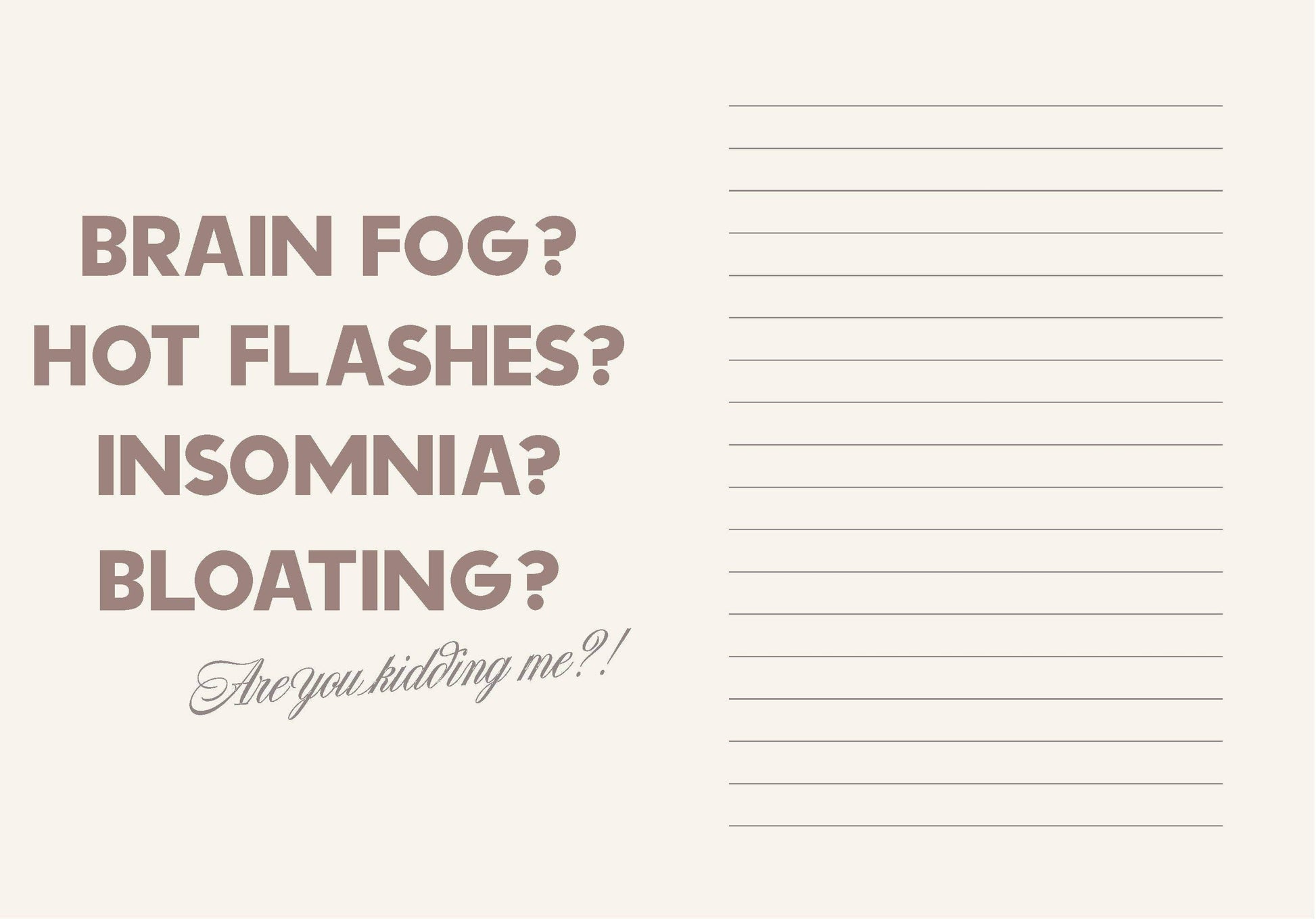 Menopause sucks. But the good news is we’re finally talking about it, making it the perfect time to get our understandably dramatic feelings out of our systems. Enter the F*ck Menopause journal—a private place to rage, vent, and process all the ups and downs of the hormonal roller coaster.