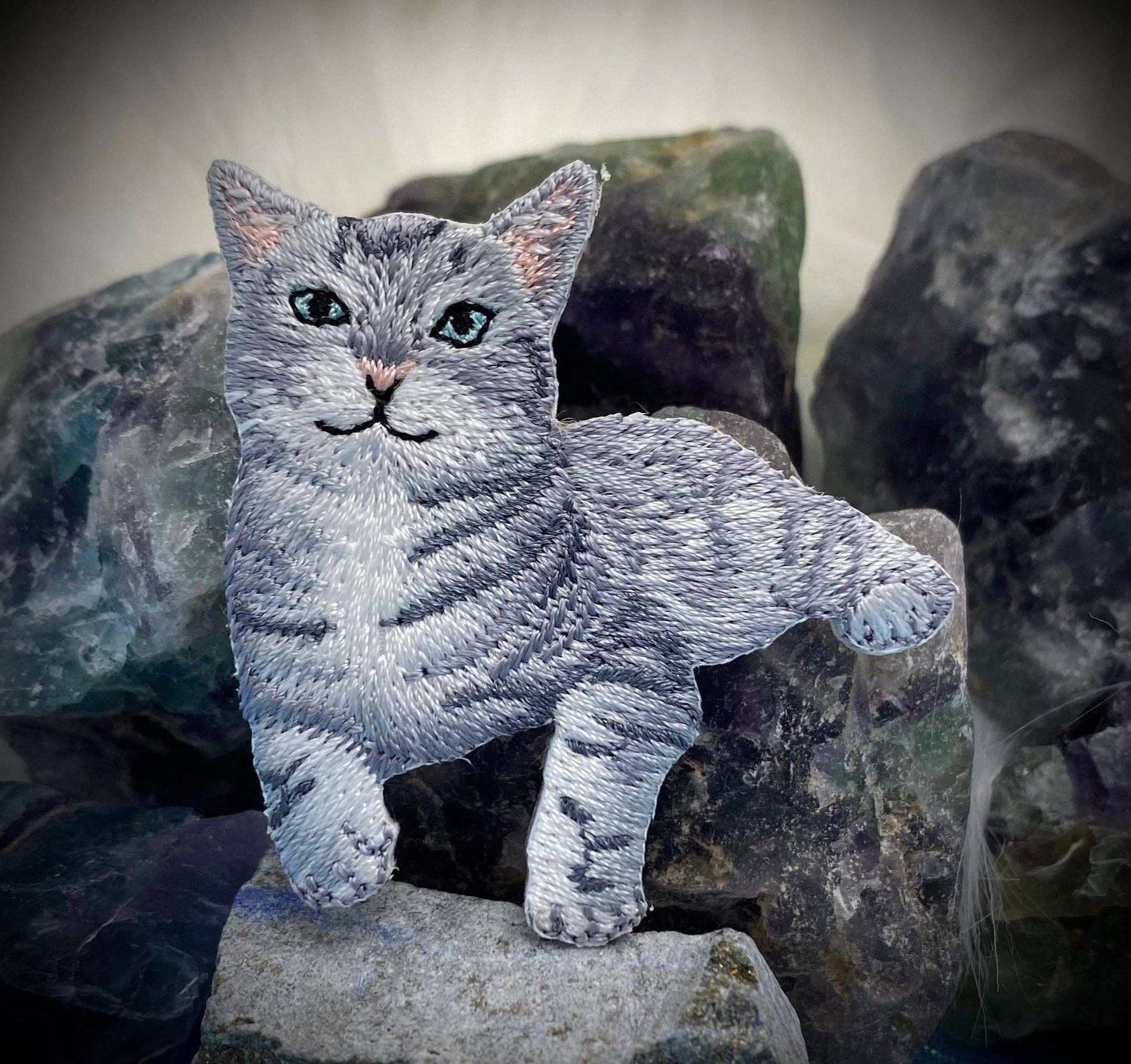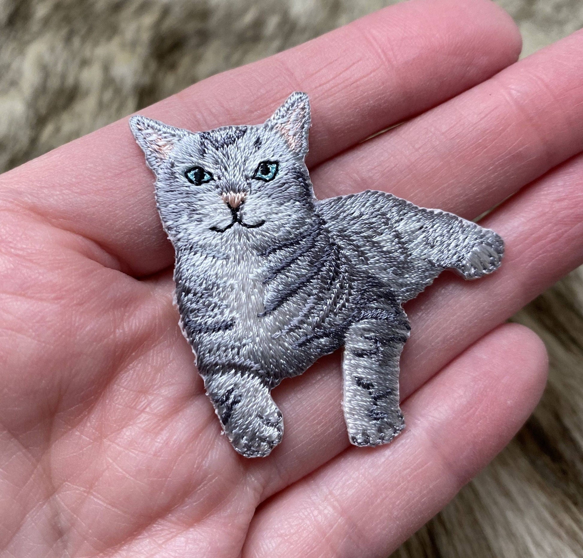 Gray Tabby Cat, Kitten, Pets, Animals, Embroidered, Iron on Patch