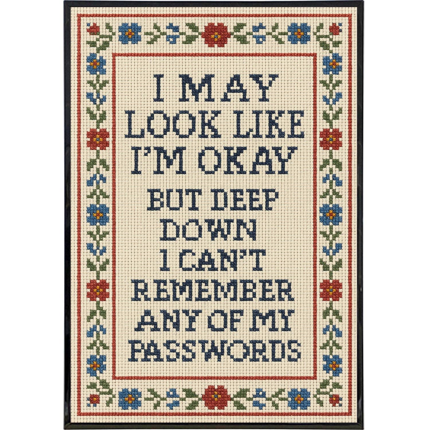 I May Look Like I'm Okay Needlepoint Poster Print: Framed Print