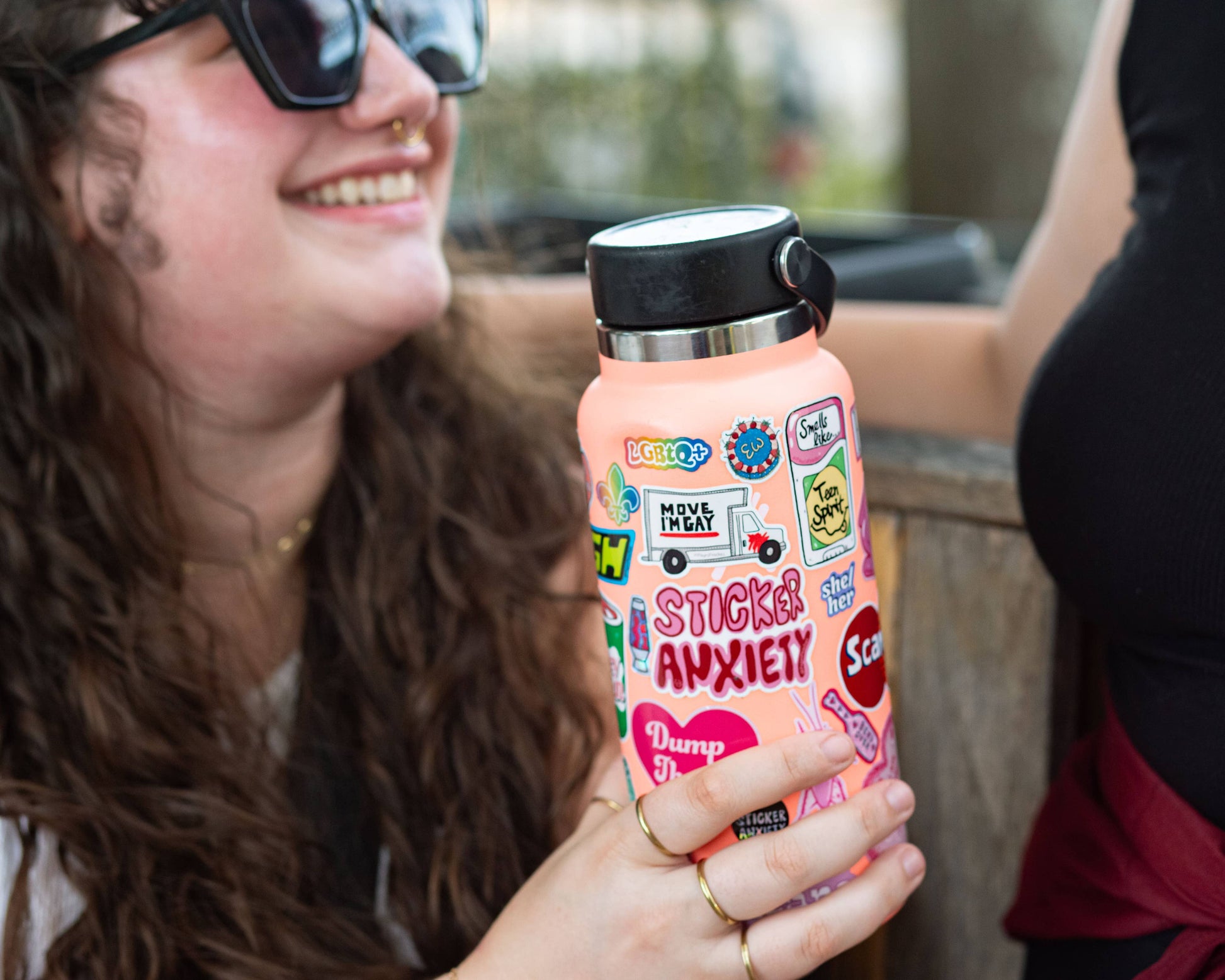 If our mini stickers aren't your style or you want to compliment them, these waterproof stickers are perfect for adding a touch of personal style to your phone case, water bottle, laptop, journals, or anything else. These stickers feature an easy peel cut and are waterproof (hand-wash only!) giving you the extra security you need to put them on any surface. They are made from original artwork that you will not find anywhere else but Page's Peaches! These stickers are perfect for anyone who loves to decorate their belongings with unique and creative designs.
