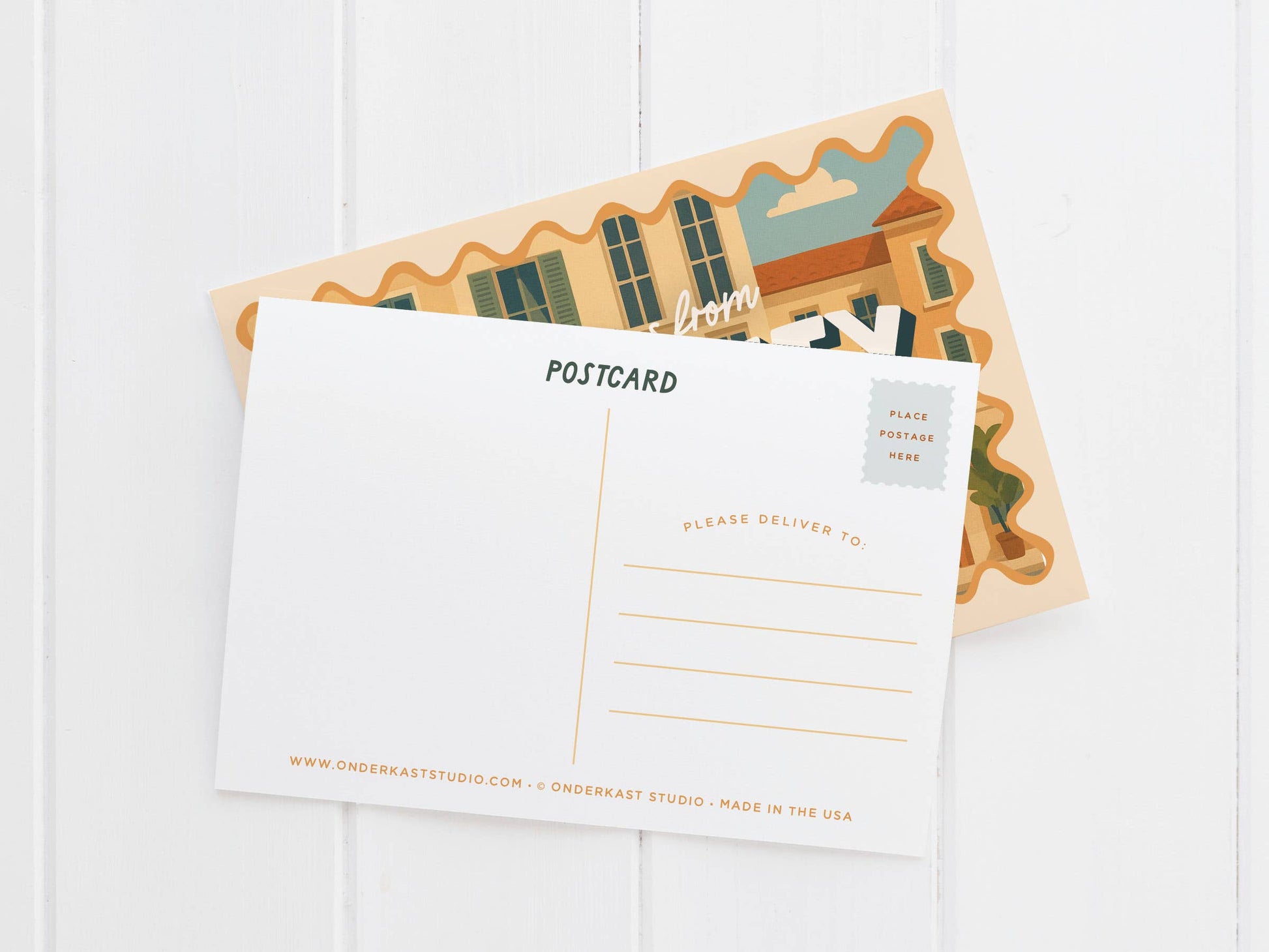 Packaging: The postcard is packaged in an open-top clear sleeve to protect from damage and dirt.