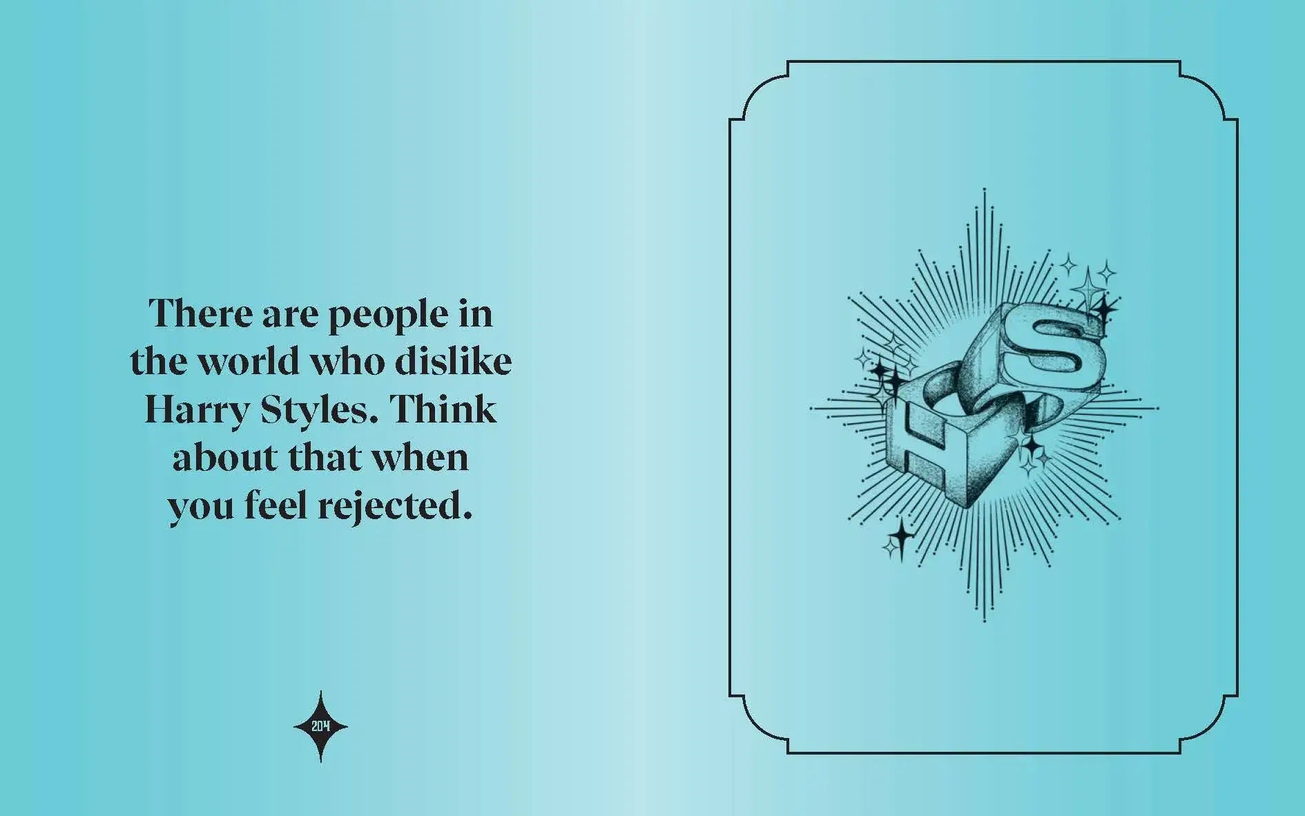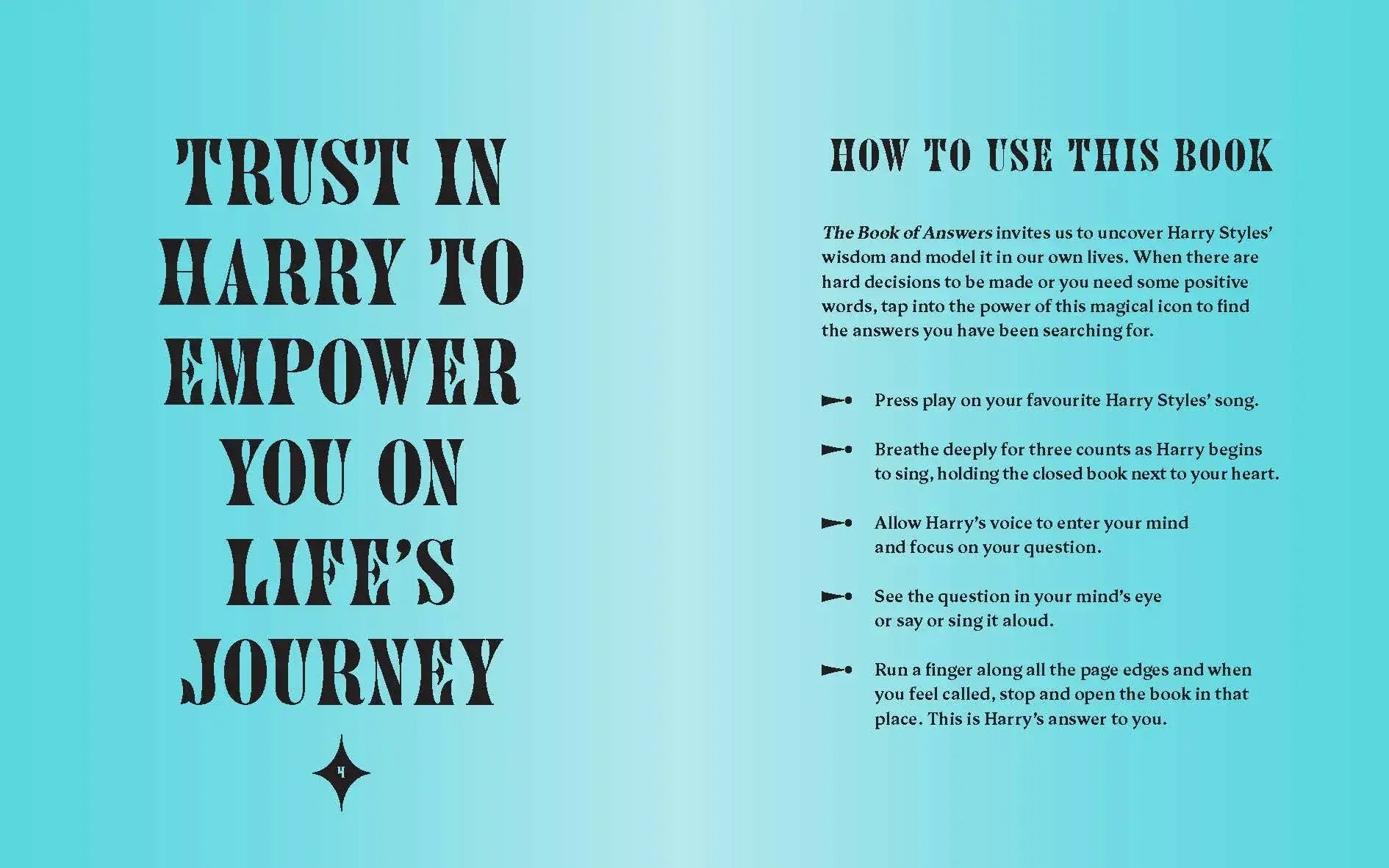 The Book of Answers According to Harry invites us to uncover Harry Styles' wisdom and model it in our own lives. When there are hard decisions to be made or you need some positivite words, tap into the power of this magical man to find the answers you have been searching for.