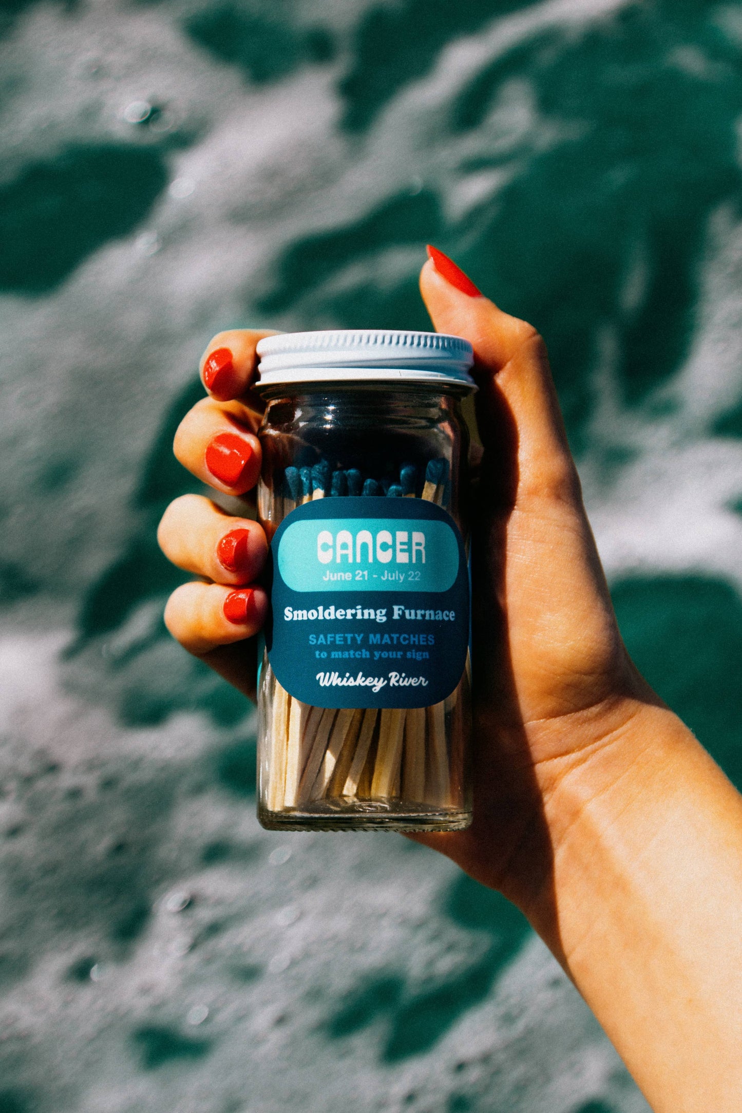 Wooden matchsticks with colored heads to match each glass jar's label.
