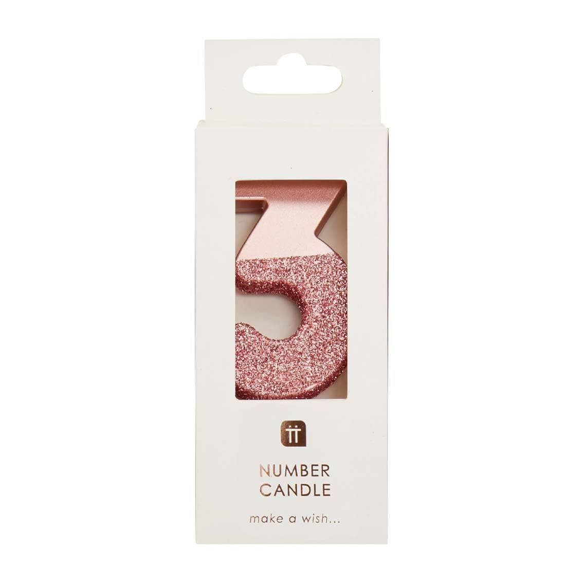 We Heart Birthdays Rose Gold Glitter Number Candle 3