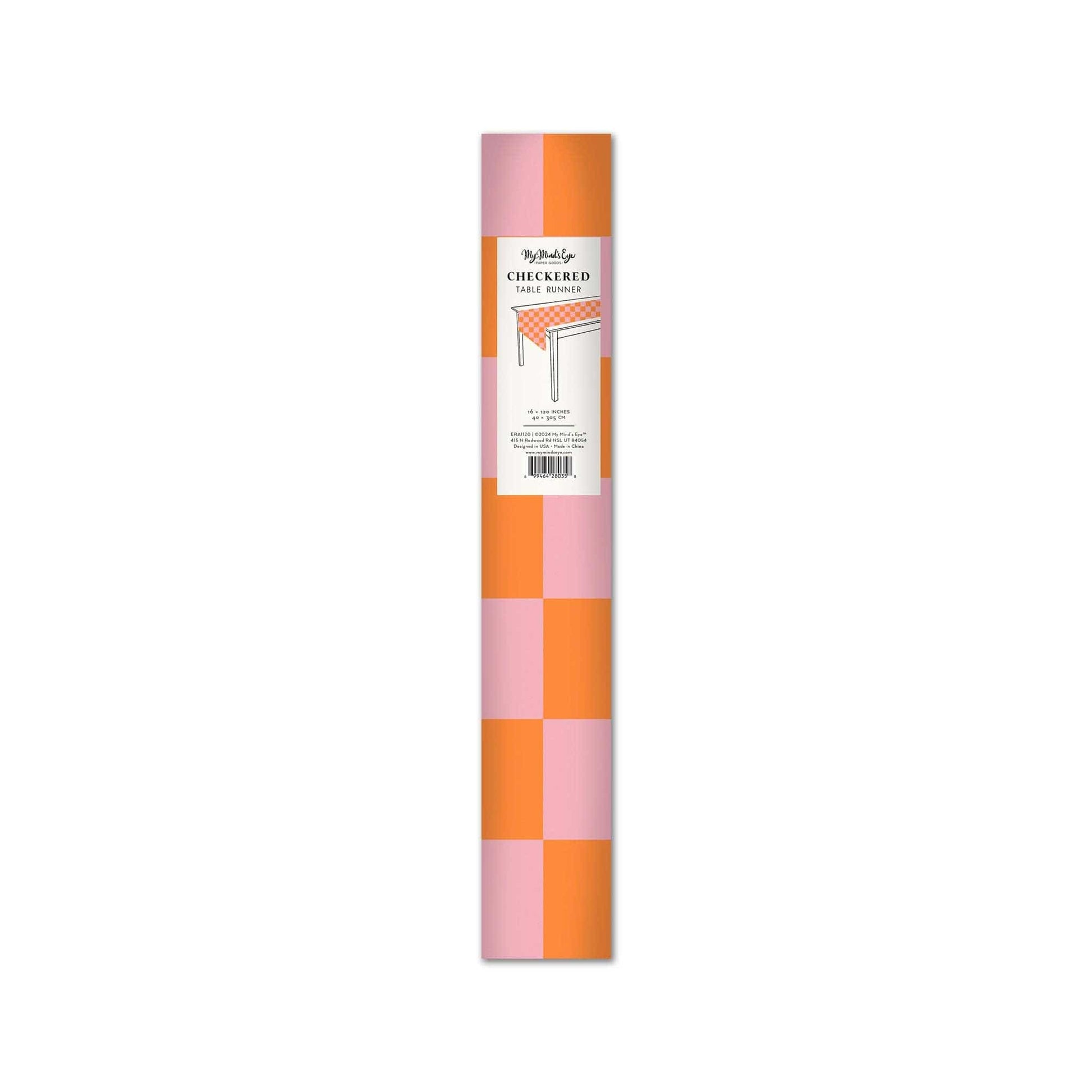 Spice up your Halloween party with a fun and festive checkered table runner in pink and orange. Add a pop of color and a touch of playfulness to your table setting, making it the perfect addition to any festive celebration.