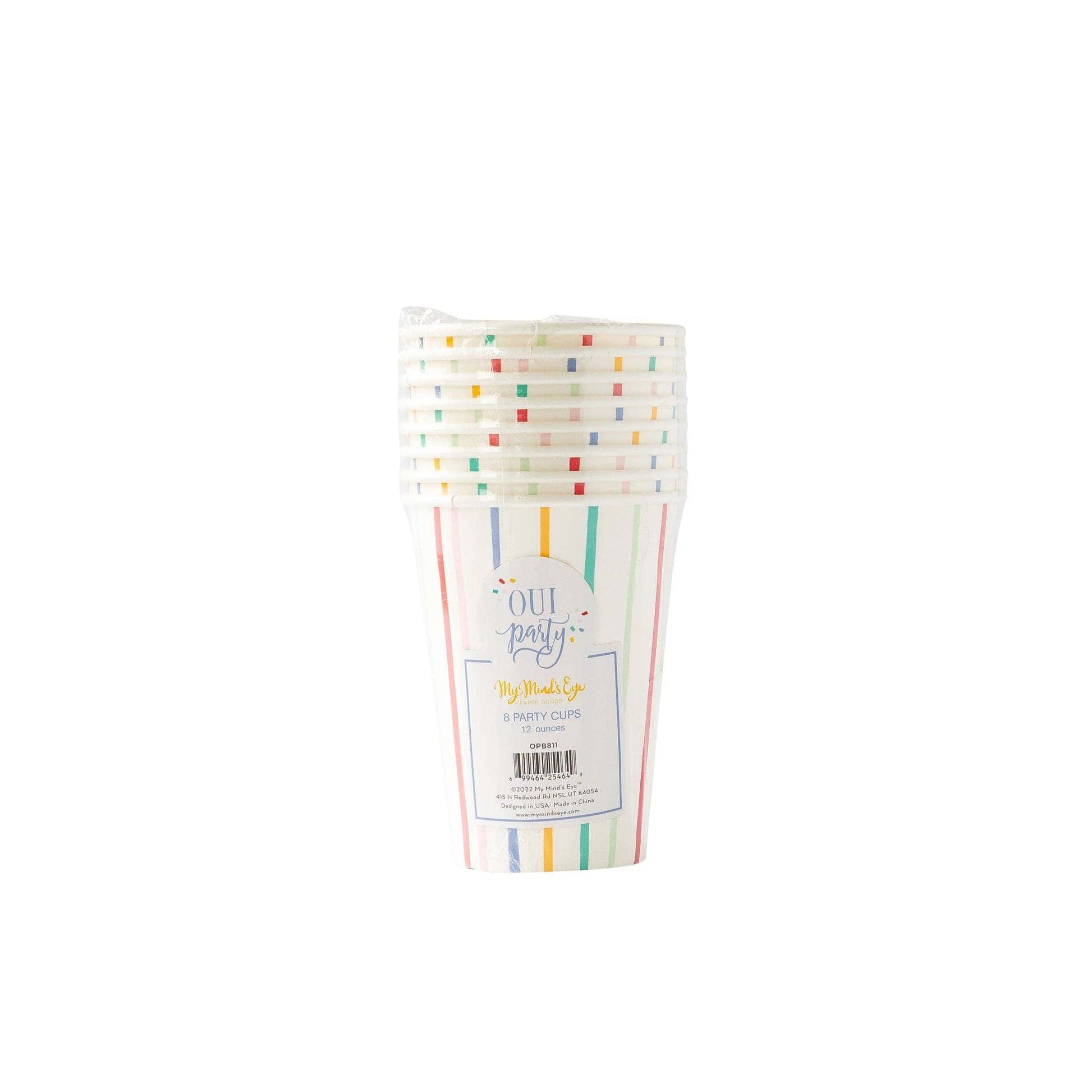 Special birthday celebrations call for stylish table accessories. And these cups will keep your guest hydrated while they celebrate the birthday girl or boy! Bright and colorful stripes add a touch of whimsy to any birthday table. • Includes 8 - 12 ounce paper cups • 4.5 inches tall and 3.5 inches wide • Food Safe