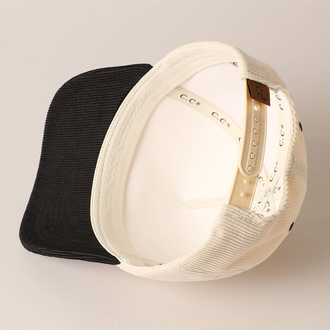 Plain Two Tone Corduroy 5 Panel Trucker Hat