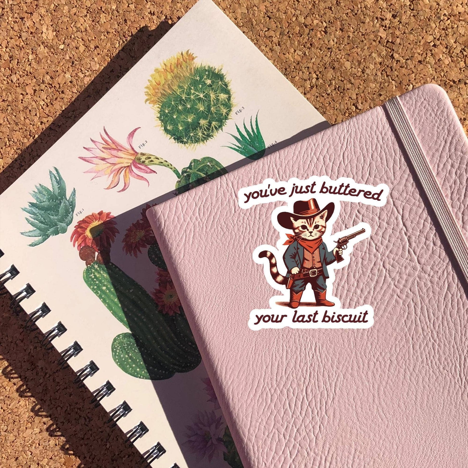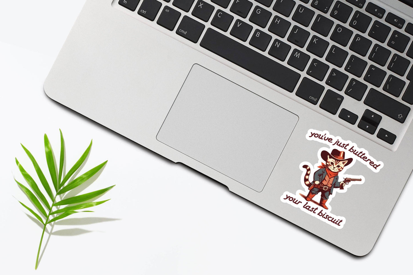 This You've Just Buttered Your Last Biscuit Sticker is perfect for laptops, notebooks, phones, tablets, mirrors, water bottles, tumblers, planners, journals, cars, and more
